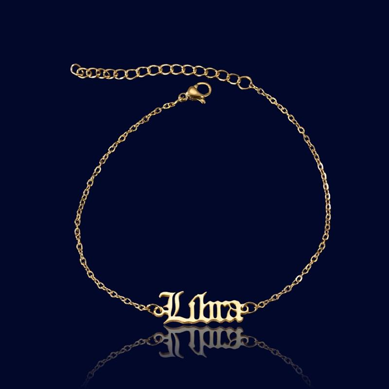 - Design : Chaîne de cheville avec le nom du signe écrit en lettres intégrées.