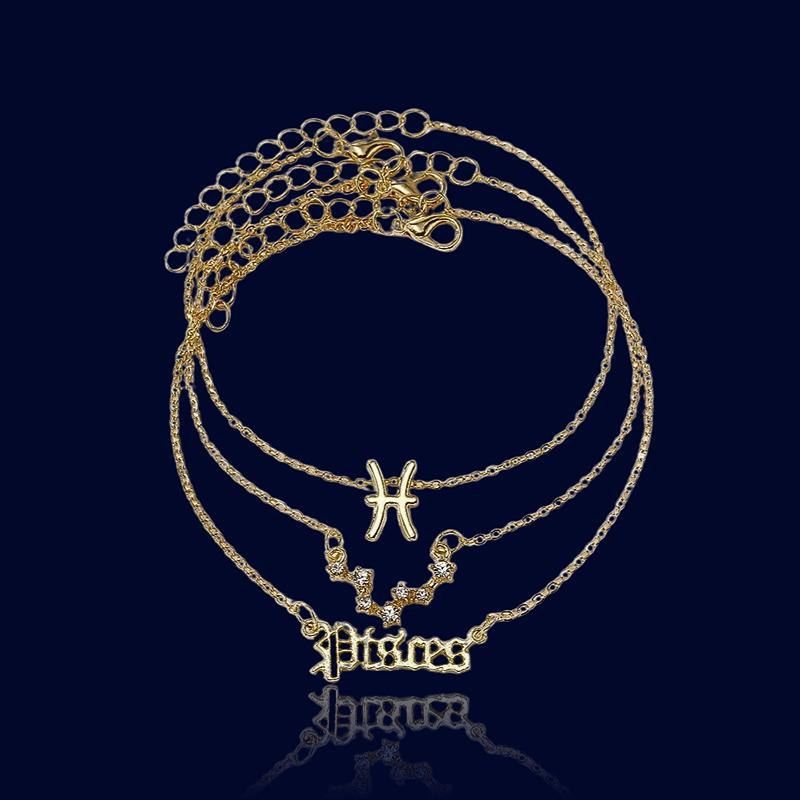 Les Poissons, signe d'Eau mutable co-régenté par Neptune et Jupiter, incarnent un esprit profondément intuitif, une imagination sans limites et une capacité unique à ressentir l'invisible et à exprimer la compassion universelle. Femme Poissons, votre force réside dans votre créativité, votre empathie et votre connexion à la dimension spirituelle. Vous êtes l'artiste de l'âme. Cet ensemble de trois bracelets de cheville Zeus est une triple évocation de cette nature mystique. Le symbole représente votre fluidité et votre intuition. La constellation scintillante évoque votre lien à l'océan cosmique et à vos rêves. L'écriture de votre signe est une affirmation douce de votre identité compatissante. Porter ce trio, c'est comme porter un poème à la cheville, une parure inspirante qui célèbre votre sensibilité et votre imagination fertile, fidèle à votre horoscope neptunien.