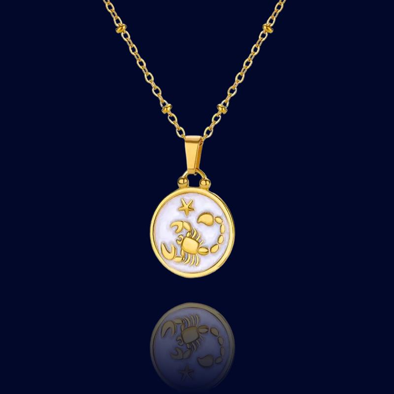 Le Scorpion, signe d'Eau fixe régi par Pluton et Mars, incarne la profondeur, la passion et une force de transformation remarquable. Votre nature est perspicace, résiliente et dotée d'un magnétisme irrésistible. Le collier astrologique Tethys reflète cette puissance : l'emblème doré (recto) affirme votre force cachée, tandis que la constellation au verso est une carte de votre âme complexe. Les pierres scintillantes évoquent votre regard pénétrant. C'est un pendentif qui célèbre votre capacité à renaître et votre intuition profonde.
