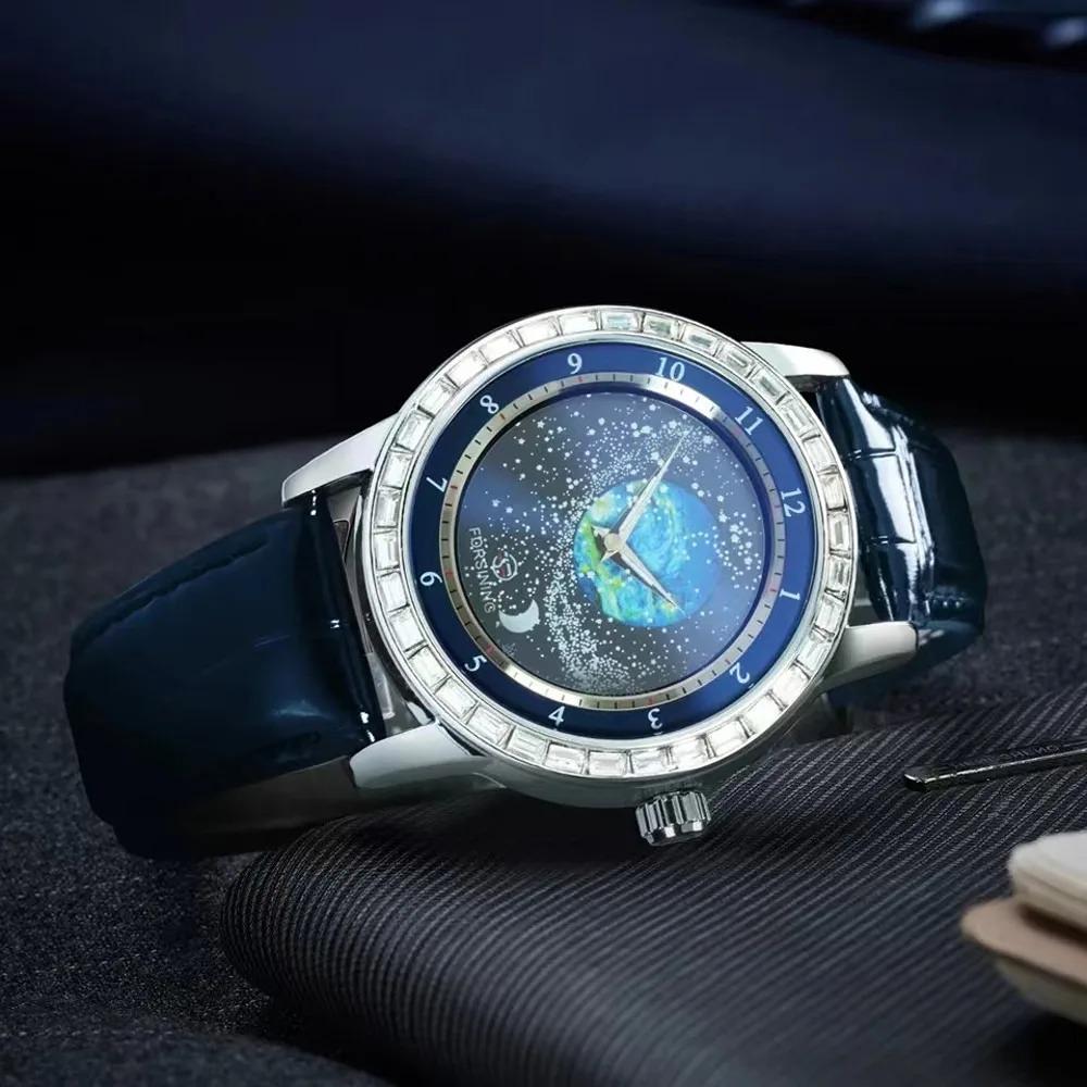 La Nereus est disponible en deux variantes élégantes : un modèle bleu foncé et un modèle noir, avec des lanières en cuir assorties, apportant une touche de sophistication discrète. Le cadran, dans la même teinte, sert de toile de fond aux constellations, tandis que le cercle externe affichant les chiffres donne à cette montre astrologique un aspect parfaitement harmonieux et fonctionnel.